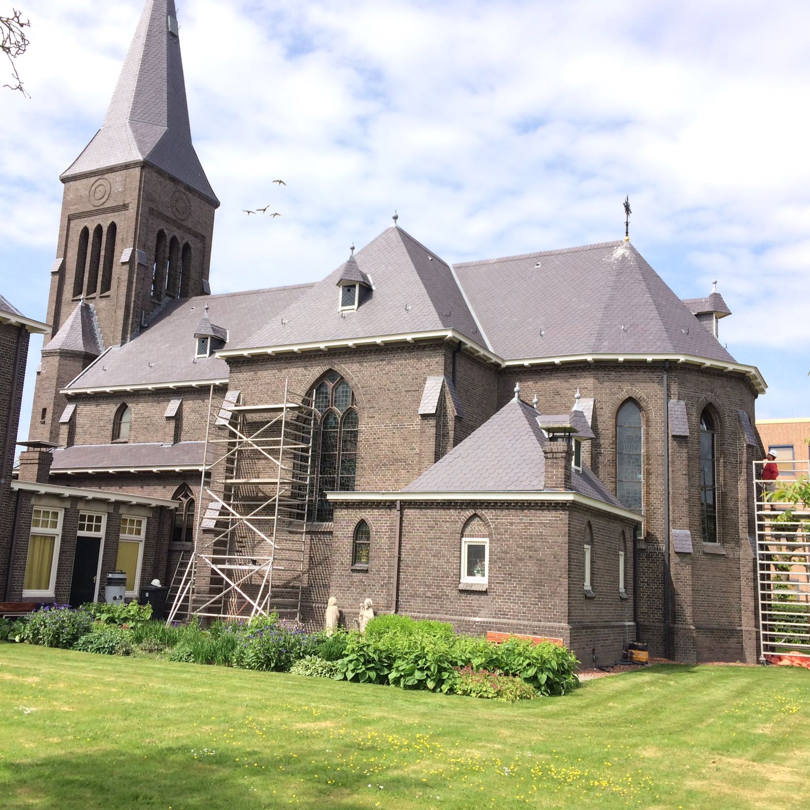 Rondom de kerk zijn scheuren geïnjecteerd met injectiemortel op kalkbasis, tevens is partieel voegwerkherstel uitgevoerd. In de kerk hebben we in de bogen plaatselijk de gesneden voeg hersteld