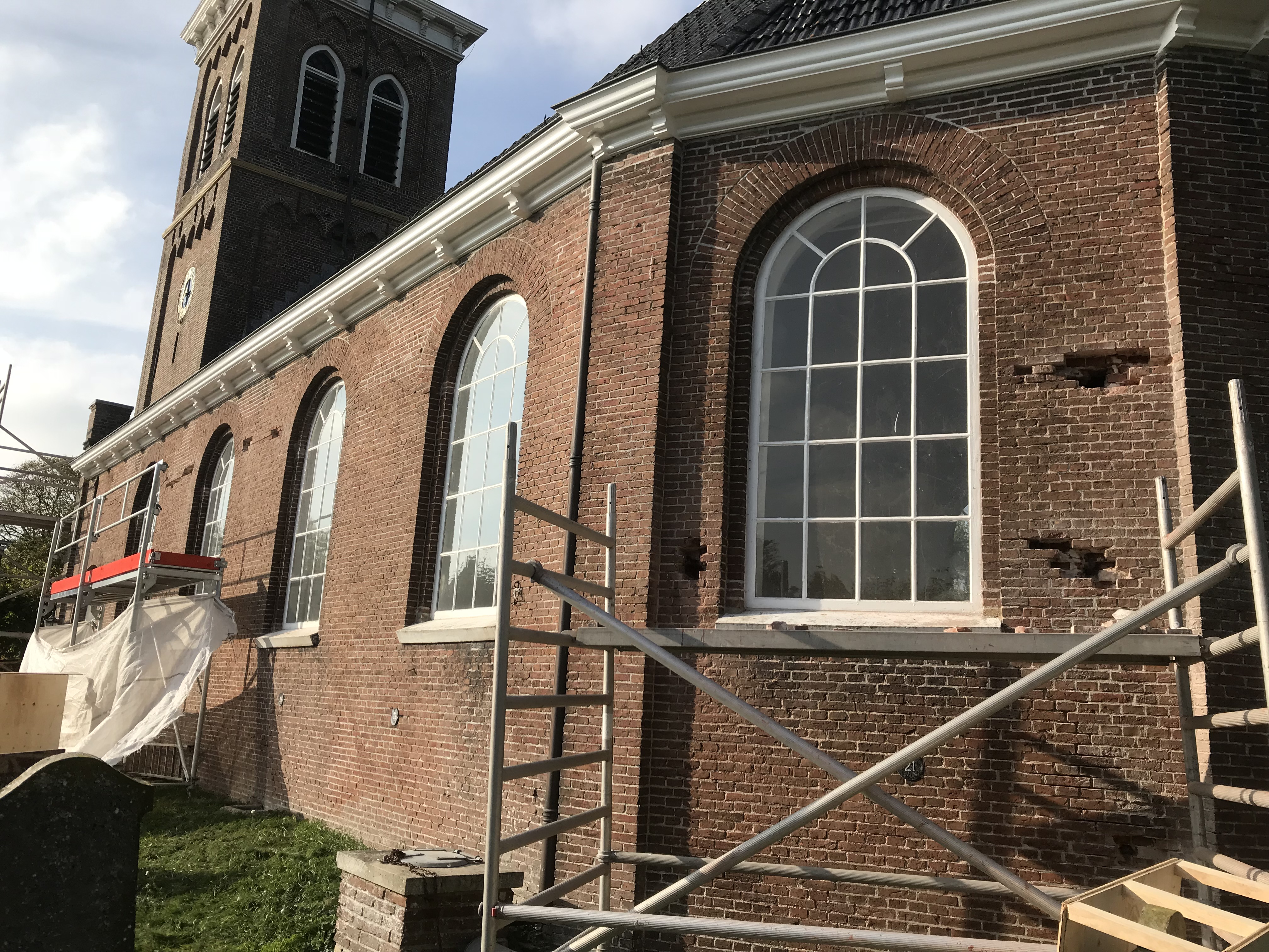 Steeds vaker mogen wij ook religieus erfgoed herstellen. Zo hebben we o.a. kerk in Baard, Oudega, Delfzijl, Makkinga, Tytstjerk, Wyns verschillende werkzaamheden mogen uitvoeren. Vaak is dit plaatselijk voegwerkherstel, behandelen roestende ankers, scheurherstel, metselwerk, lood vervangen kortom alle voorkomende werkzaamheden betreffende het herstel van de gevels.